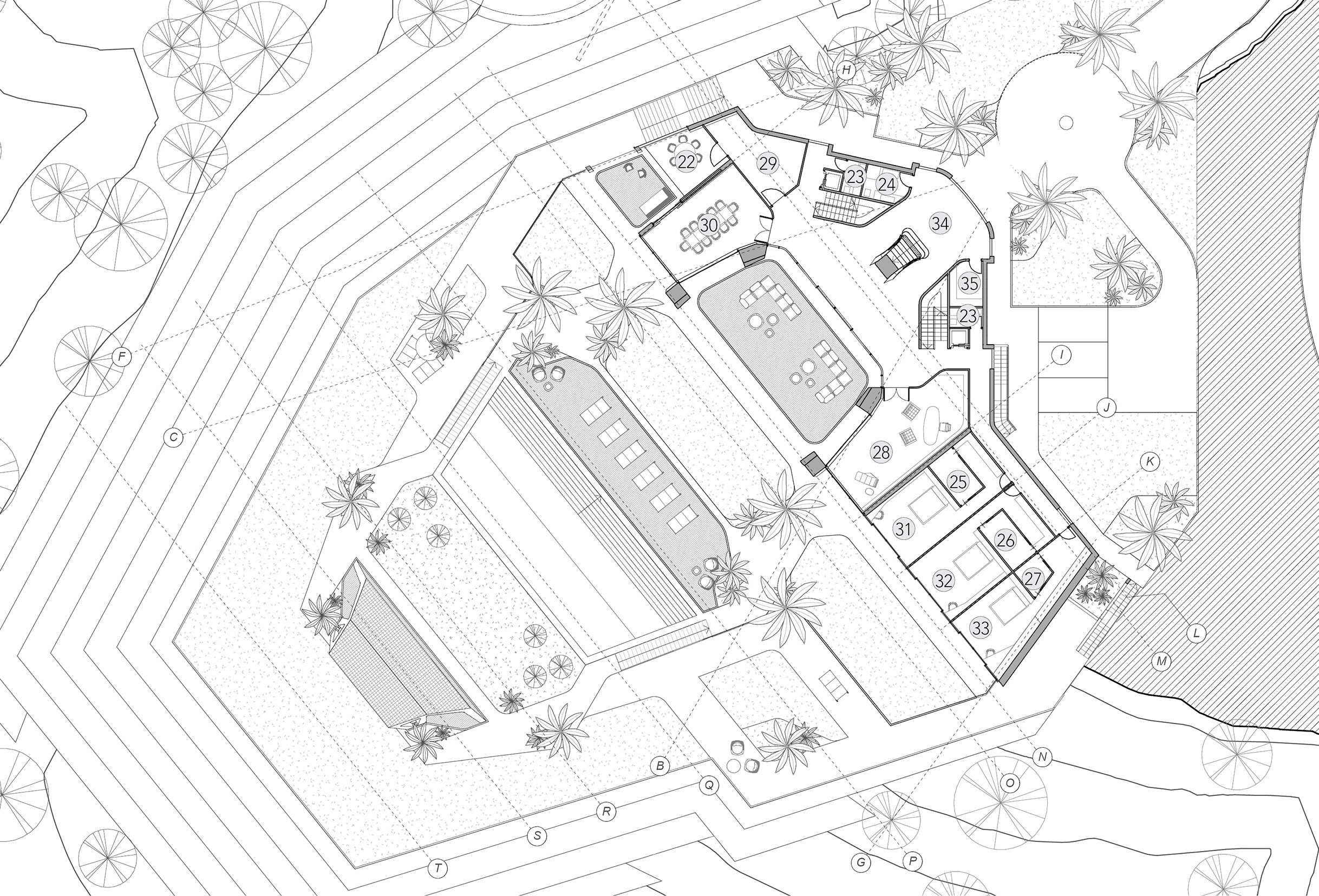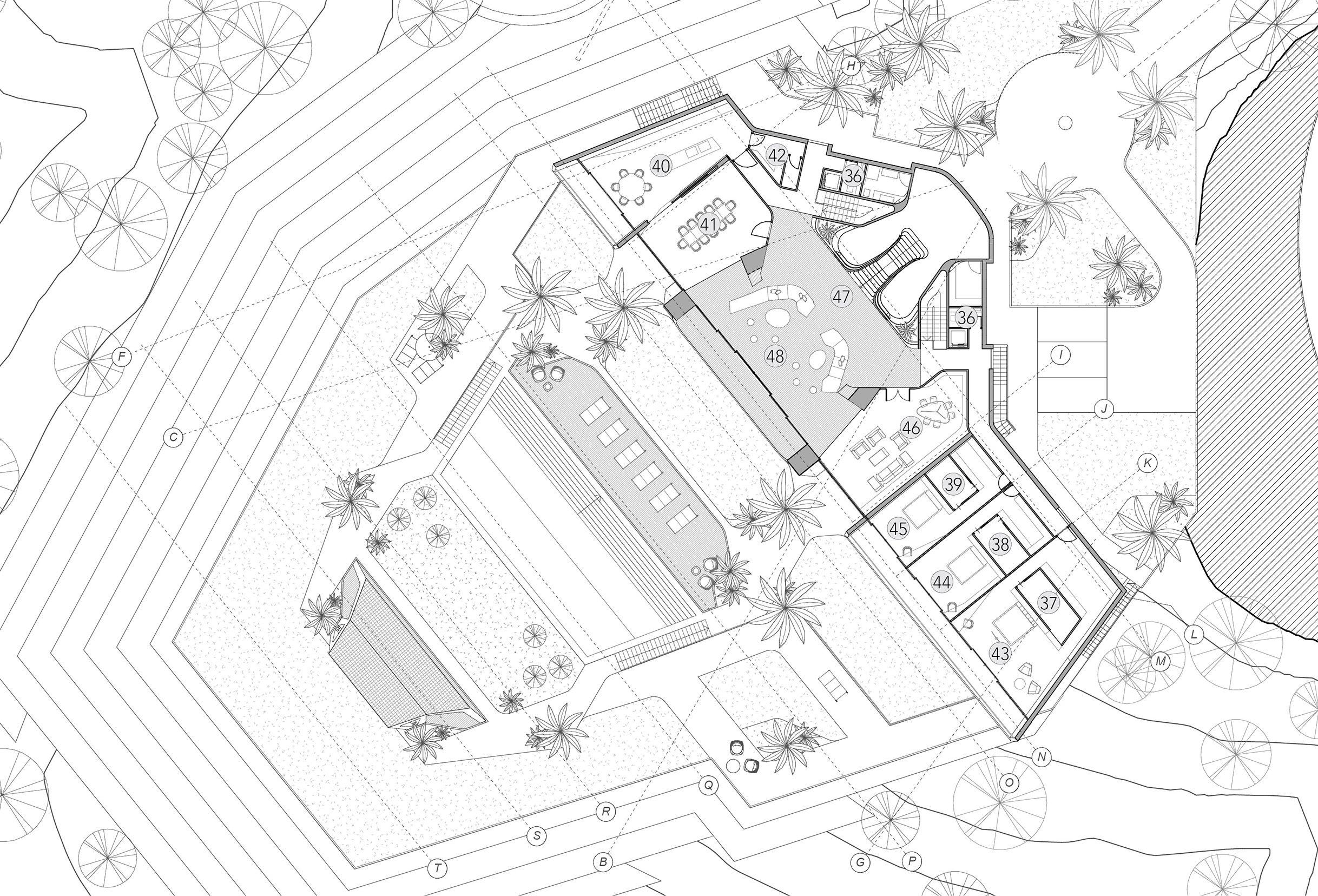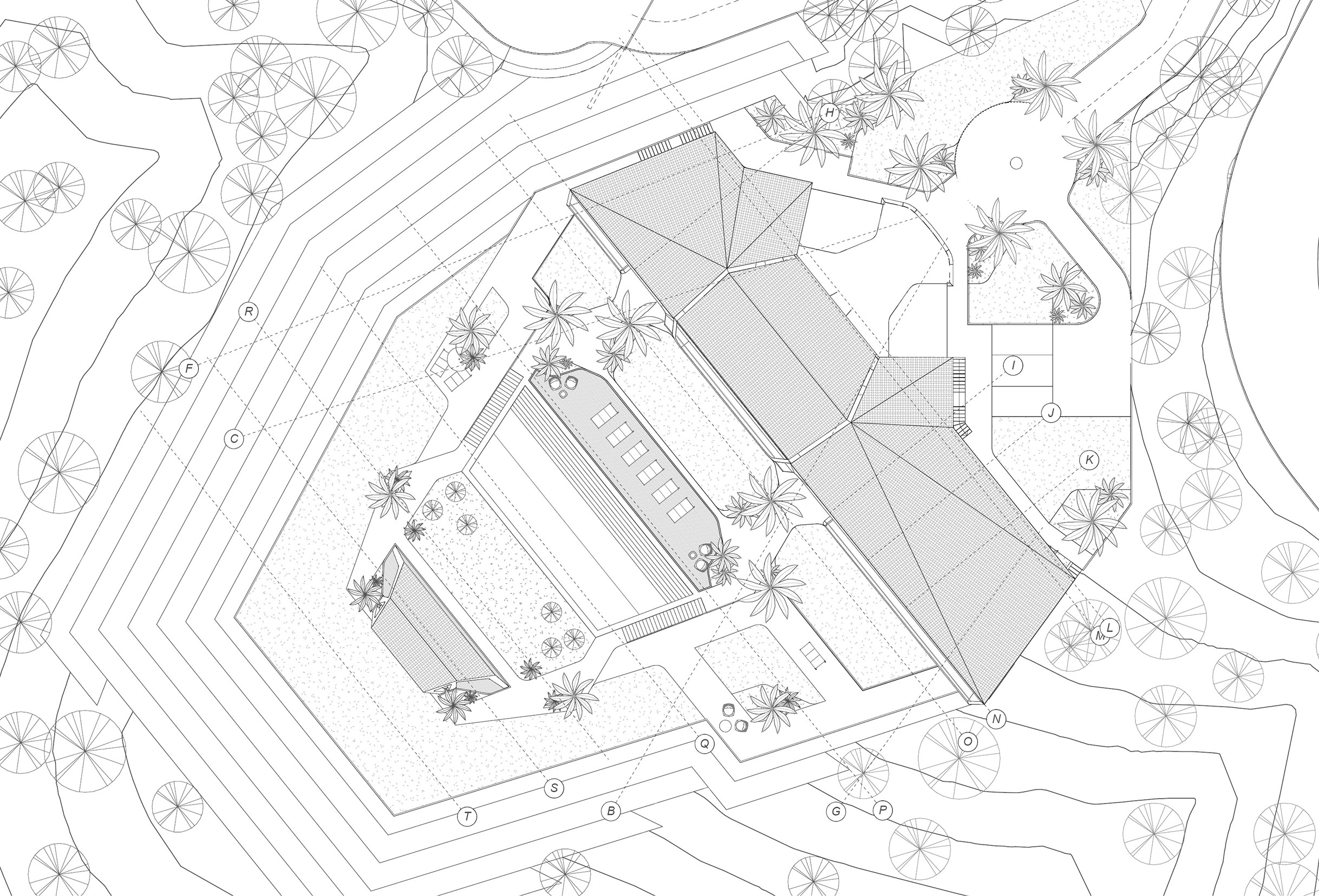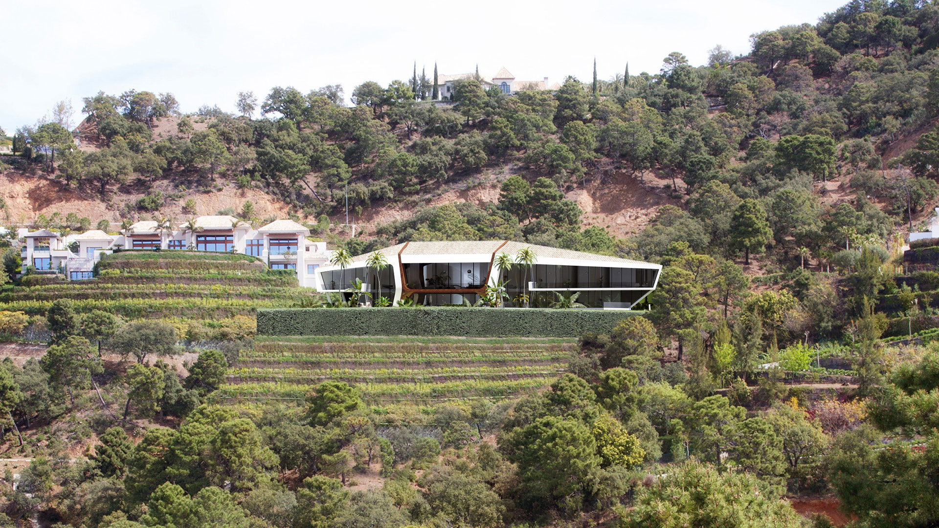 La vivienda se desarrolla y eleva sobre el terreno para dominar el paisaje.